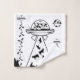 Eine lustige Schwarz-Weiß-Illustration eines nicht identifizierten Flugobjekts, UFO entführt Kühe aus einem Feld. Die Drehung ist, dass die Piloten der Raumschiffe auch Kühe sind. Ein lustiges Bauerndesign.