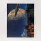 UFO- Foreign World - SciFi Landscape Poster Ein UFO oder Raumschiff fliegt über eine mit Wasser und Felsen befüllte Landschaft auf einer fremden Welt, wie ein großer MOON im Hintergrund droht