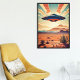Treten Sie ein in eine Welt des Mysteriums und des Staunens mit unserem bezaubernden Plakat mit einem fliegenden Untertassen-UFO, das durch die weite Wüstenlandschaft radelt. In warmen, erdigen Farben gebadet, erinnert diese Szene an ein Gefühl von Abenteuer und Intrige. Beobachten Sie, wie das UFO durch den goldenen Sand zieht, und verlasse eine Spur von Neugier in seinem weck. Lass deiner Fantasie mit dieser atemberaubenden visuellen Darstellung des Unbekannten. Entdecken Sie die unendlichen Möglichkeiten jenseits des Horizonts mit unserem faszinierenden Wüste UFO Poster.