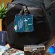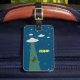 Sci fi Gepäckanhänger mit Retro-fliegenden Untertassen, die eine Kuh entführen.