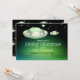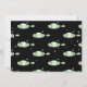 Eine Babypartyeinladung, die ein Mutterschiff und ein Baby UFO zeigt. Die zwei schwimmen in Raum. Die Hintergrundglühenfarbe ist grün. Der Text ist ganz kundengerecht. Die Rückseite der Einladung hat ein Untertassenmuster.