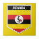 Die Nationalflagge Ugandas wird zusammen mit dem Ländernamen in eine Schildform eingebettet.