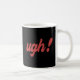 Ein bedrücktes Design mit einem Karikaturencharakter mit einem traurigen Ausdruck, der einen T - Shirt trägt, auf dem das Wort "Ugh" steht. Der Charakter ist von einem hellgelben Hintergrund umgeben.