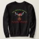 Spaß und goofy aussehend Rentier mit Weihnachtsmannmütze und einem Ornament, das von seinem Geweih mit Strick Design Boarder hängt. Sieht gut aus in jeder dunklen Farbe. Handgezeichnete Abbildung von McBooboo.
