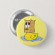 Schlechtes, hässliches Entlein. Button hat einen gelben Hintergrund mit einer hellgelben Ente, die auf blauem Wasser schwimmt und einen braunen Papierbeutel auf seinem Kopf trägt.