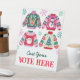Dieses hässliche Pullover-Zeichen, das "hier abstimmen", enthält 4 Weihnachtsschwitzer mit vielen lustigen Weihnachtsbildern wie Santa, Rentier, einem Schneemann und einem Weihnachtsbaum, umgeben von Schneeflocken in einer Farbpalette von Rot, Grün und Rosa. Sie können den Text anpassen. Sehen Sie sich die gesamte passende Auflistung an. Alle Kunstwerke sind von Hand illustriert und urheberrechtlich geschützt.