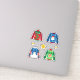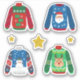 Vier farbenfrohe hässliche Pullover und goldene Glitzer Sterne (nicht echter Glitzer).