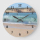 Uhr mit einem Foto von Wellen, die auf einem Strand brechen und Felsen im Hintergrund