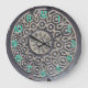 Das Emblem ist mit einer Manchloberabdeckung für den Zugang zum Telefonunternehmen, mit einem schwarzen Sechseckmuster versehen. Dreidimensionale blau-grün Ziffern kennzeichnen die Stunden.