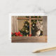 Kätzchen im Weihnachtsfenster Beobachtung für den Weihnachtsmann, leichte Malwirkung auf Foto Weihnachtskarte