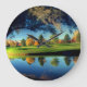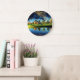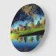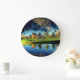 Bringen Sie ein Gefühl von Ruhe und natürlicher Schönheit in Ihren Raum mit dieser eleganten Uhr, die eine friedliche Szene am See zeigt. Das warme goldene Licht, das lebendige Grün und die sanften Spiegelungen auf dem Wasser schaffen eine entspannte Atmosphäre, perfekt für jedes Zuhause oder Büro. Ideal für Naturliebhaber, fügt dieses Design Ihrem Dekor eine Note der Gelassenheit und Harmonie hinzu, während es Sie pünktlich hält.