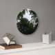 Diese phantastische Uhr zeigt ein Foto aus einem dichten Wald. Das Foto zeigt die Dunkelheit der Bäume und einen kleinen Bereich des grauen Himmels. Das Ergebnis ist eine unheimliche und stimmungsvolle Szene.