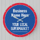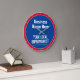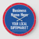 Wall Clock für einen Dorfladen, lokalen Supermarkt, Convenience Store oder örtliche Lebensmittelgeschäfte. Bearbeiten Sie das Design, um die Formulierung in Anzug zu ändern. Blau und Rot.