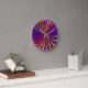 Die optische Illusionsusionsuhr weist lila und rosa Farbtöne auf, die mit anderen Farben betont werden. Originator des zur Wiederverwendung freigegebenen Bildes. Vielen Dank! Von WebzPickz.