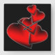 Sehr romantische Wanduhr mit fünf verschiedenen roten mattierten Kaskadenherzen auf schwarzem Hintergrund. Wird ein gutes Geschenk für Valentinstag oder nur, um jemanden daran zu erinnern, dass Sie sie Liebe.