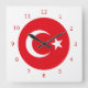 Square Wall Clock mit Flagge der Republik Türkei, rote Flagge mit weißer Sonne, Mond und Stern