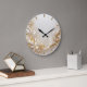 Schöne Uhr an der weißen Wand aus weißem Gold