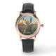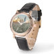 Uhr, Klassische Damenuhr mit schwarzen Lederarmband