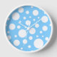 Ein kühn wirkendes Punktmuster mit unebenen weißen Flecken auf hellblau.