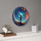 Erhöhen Sie Ihre Wohngestaltung mit dieser atemberaubenden Wanduhr, die Kunst und Funktionalität kombiniert. Die Uhr ist ein visuelles Meisterwerk, das ein faszinierendes Design eines stehenden mit ausgestreckten Armen, umgeben von einem kosmischen Wirbel aus lebhaften Farben und Himmelselementen bietet. Das elegante, rund um die Uhr angebrachte Gesicht ist ein Set an einer weißen Seilwand, das jedem Zimmer eine Touch moderner Eleganz verleiht. Diese Uhr liegt perfekt über einem kleinen Tisch, der mit Büchern und einer Pflanze aus gepflastertem Lavendel geschmückt ist und nicht nur die Zeit verrät, sondern auch als einzigartiges Kunstwerk dient, das Wunder und Fantasie inspiriere. Diese Wanduhr ist ideal für Wohn-, Schlafzimmer oder Büroräume und bietet eine Mischung aus praktischer und ästhetischer Anziehungskraft.