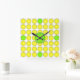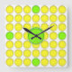 Drei dimensionale gelbe Punkte werden in 7 Reihen von sieben nachgebildet. Der mittlere Punkt auf vier Randreihen ist grün (12, 3, 6 und 9 Positionen) Die Mitte der Uhr hat einen großen grünen Punkt, wo die Uhrenhänder positioniert sind. ***Teil des koordinierten Set - BKM1q.