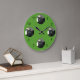 Ihr Haustier steht an den 12, 3, 6 und 9 Stellen dieser Uhr im Rampenlicht. Ihr quadratisches Bild wird an jedem Punkt in einem Kreis platziert. Der Hintergrund kann nach Ihren Vorstellungen angepasst/bearbeitet werden (Standard Grün).