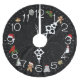 Eine weiße Vintage Uhr auf schwarzem Hintergrund mit lustigen Weihnachtselementen und Schneeflocken. Die Hintergrundfarbe kann geändert werden.