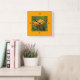 Orange Calendula blüht. Ein doppelter Rahmen mit in die Ecken geschnittenen Quadraten nimmt die Farbe des gewählten Hintergrunds an (standardmäßig orange). Wechseln Sie zu Ihrem Bild und/oder ändern Sie die Hintergrundfarbe, um sich mit ihm abzustimmen. Vier große Taktziffern: 12, 3, 6, 9 sind schwarz.