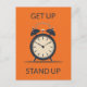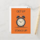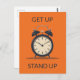 Diese Postkarte hat eine einfache Schreibtischuhr-Abbildung vor einem soliden orangefarbenen Hintergrund mit dem anpassbaren Text "Aufstehen, Aufstehen".