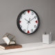 Zahlenmarkierungen sind rote Dreiecke mit 12, 3, 6 und 9. Andere Ziffern sind schwarze Kreise.
