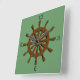 Grafisches Bild des Schiffs drehen herein Braun mit schwarzem Schatten. Hintergrund ist Mediumgrün. Schwarze Ziffern sind in 12, 3, 6 und 9 Positionen
