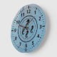 Das Porthole, das durch einen gewellten Kreis in einem festen Kreis vorgeschlagen wird, umkreist vier Seepferd in der Mitte, ein großes oben und drei kleinere darunter. Das gesamte Design und die Uhrenmarkierungen sind schwarz, mit einem Hintergrund aus Hafenwasser.