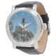 Uhr, Klassische Damenuhr mit schwarzen Lederarmband