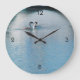 Western Grebes (Ufervögel), die nah in den ruhigen Gewässern eines Hafens schwimmen, wobei der Schiffskörper das Wasser in subtiler Weise reflektiert. Die weißen Hals und die schwarzen Köpfe zeichnen sich durch eine besondere Note aus. Schwarze Zahlen an 12, 3, 6 und 9 Positionen.