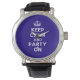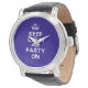 Basierend auf dem ursprünglichen Behalt Calm und ... Plakat dieser cremefarbenen und blauen Behielt Calm und Party On Watch verfügt über einen maßgeschneiderten Schriftart, der dem Original genau entspricht.