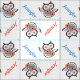 Frühlingshuhu und Name personalisierte Muster Stoff mit einem niedlichen Federtier aus der Frühlingshuhe in himmelblau und braun und Korallen Blume mit grünen Blätter und Ihrem Namen. Dieses niedlich anpassbare Template Design ist ideal für ein Kinderzimmer und Kinderzimmer. Einige Elemente von Trina Clark.