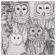 Ursprünglich in Tinte gezeichnet, illustriert Eule-Muster. Umfasst die Eule des Baronuhs, die Eule des Barroten Auges und die Eule des Großen Horned. Illustration, Eulen, Vögel, große Hornkeule, Heuschrecken, Hirsche, Ornithologie, Natur, Nachtschwärmer, North Carolina, Halbziegelwiederholen, Elfenbein, Schwarz