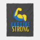 Das dunkle Vlies-Deckendesign hat eine Bizeps-Grafik mit dem ukrainischen starken Text in blau und gelb Farbe der ukrainischen Fahne. Slava Ukraini!