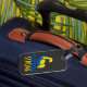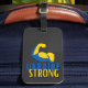 Das dunkle Gepäckschild-Design hat eine Bizeps-Grafik mit der Ukraine starken Text in blau und gelb Farben der ukrainischen Flagge. Slava Ukraini!
