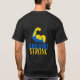 Dunkle T - Shirt-Design hat bizarre Muskelgrafik mit der Ukraine starken Text in blau und gelb Farbe der ukrainischen Fahne. Slava Ukraini!