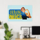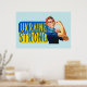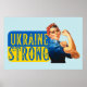 Dieses Plakatdesign, das die Frauen der Ukraine würdigt, enthält "Ukraine Strong" auf der ukrainischen Flagge mit der Vintagen Rosie the Riveter-Illustration.