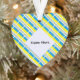 Die blaue und gelbe ukrainische Flagge, darunter das Wort UKRAINE, in den Farben der Flagge. Design ist gefliest für künstlerische Wirkung. Ein weißes Fraktal von quadratischen Plätzen bietet einen Platz für Ihren Namen für eine personalisierte Touch. Oder erstellen Sie ein individuelles Geschenk, indem Sie den Namen eines anderen hinzufügen
