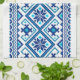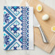 Ukrainian traditional vushuvanka folk pattern kitchen towel. Dark blue and light blue colour pattern.