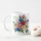 Ukrainian traditional vushuvanka folk art pattern coffee mug. Multicoloured flowers pattern.