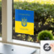 Das Wappen des Staat der Ukraine (Ukrainisch: Д р е ж н а в и Staaten direkt direktй in den gleichen Farben, die auf der ukrainischen Flagge zu finden sind; ein blaues Schild mit einem goldenen Dreieck.