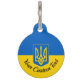 ID-Tag für Haustiere mit der Flagge der Ukraine, eine blaue und gelbe Flagge mit dem ukrainischen Wappen (Emblem) mit einem Dreieck in der Mitte