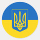 Rundaufkleber mit der Flagge der Ukraine, blaue und gelbe Fahne mit ukrainischem Wappen (Emblem) mit einem Dreifach in der Mitte