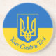 Sandstein Untersetzer mit der ukrainischen Flagge, eine blaue und gelbe Flagge mit dem ukrainischen Wappen (Emblem) mit einem Dreieck in der Mitte und eine benutzerdefinierte Textvorlage für Ihre Nachricht