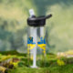 Ukrainische Typografie und Weizenohr auf ukrainisc Trinkflasche