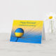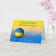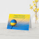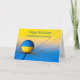 Ukrainische Geburtstagskarte in blau und gelb, zweisprachig mit Englisch und Ukrainisch.